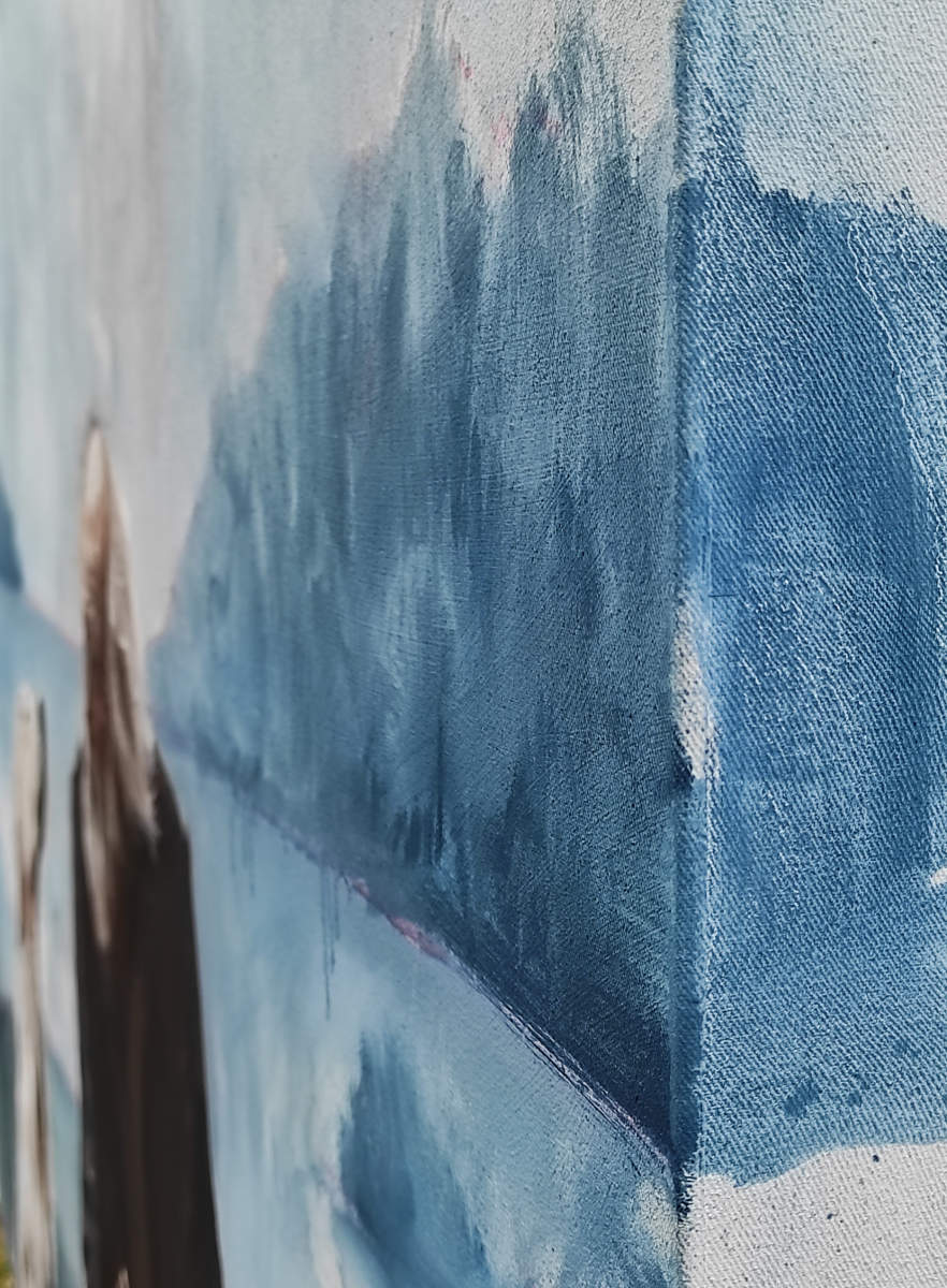 And all this happens within the context of this landscape that is in the background, but which frames this image and which also has layers of meaning. The beach is a place where friends go for walks. It’s a place where time goes by, yet little changes fundamentally. However, small things are different every time you go there – the sky, the clouds, the colour of the water, the tides, etc. etc. And this is the place where memories are created, and also where times of reflection occur. The blue-grey colour creates a sense of nostalgia for me – yet also of peace.